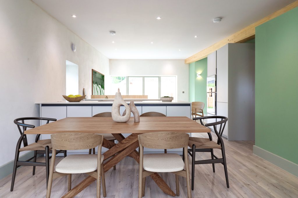 Despite using materials literally dug from the ground, the finished home demonstrates that sustainable construction need not compromise on quality or aesthetics. Inside, our sister-company Arcadia Home & Living have installed sleek SeiMatic kitchen units and high-tech Gaggenau appliances to create a space truly designed for modern living.