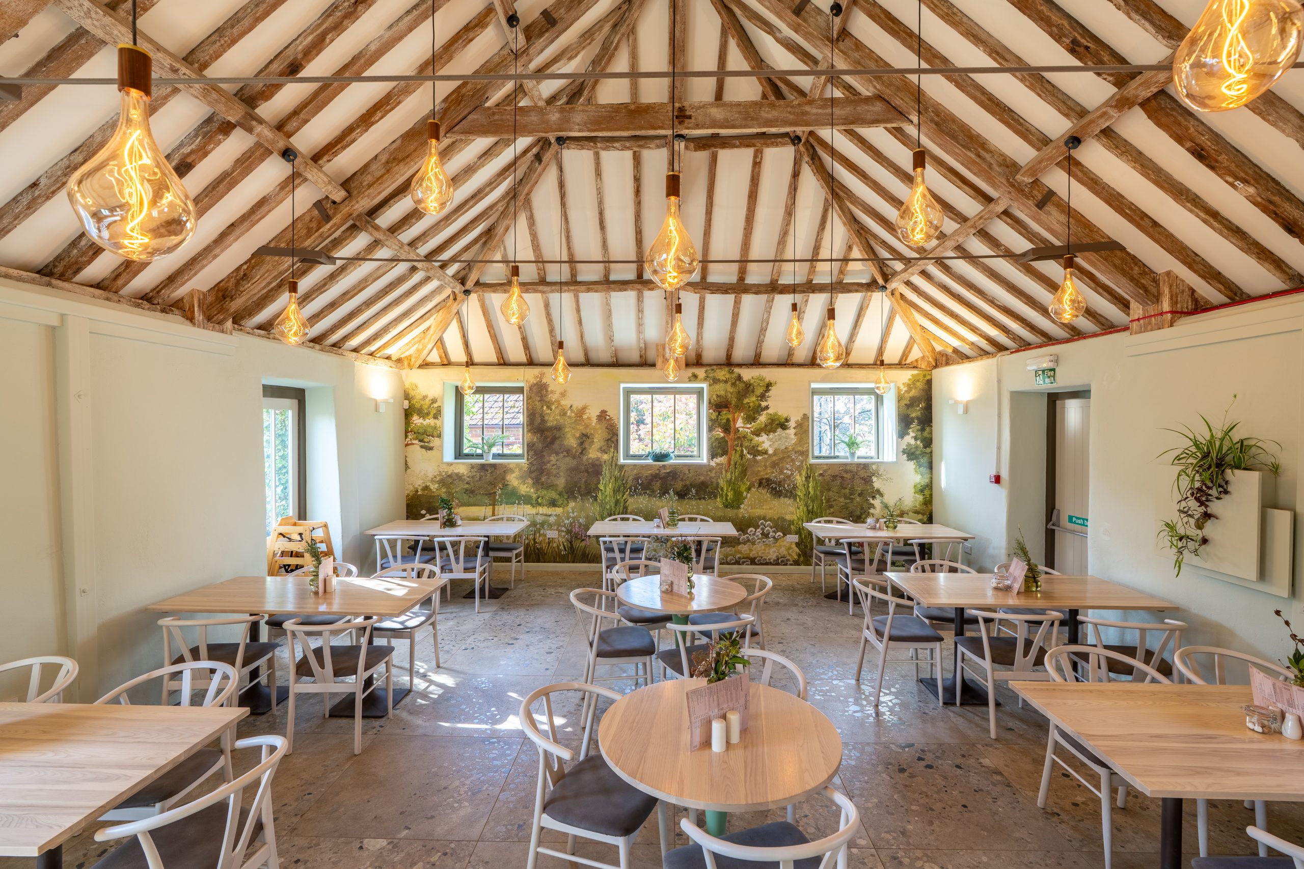 We revitalised the café with a contemporary edge while retaining its natural charm. Floor-to-ceiling windows now flood the space with light, creating a refreshing, almost alfresco experience for guests. The exposed beams were preserved to maintain a warm, comforting atmosphere and introduced underfloor heating throughout for added comfort.